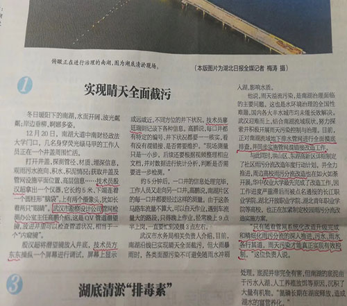 2018年12月20日,湖北日報全媒記者親赴南湖隱患排查現(xiàn)場,針對測繪工程公司所負責的“南湖水環(huán)境提升攻堅工程”中的管線測量及隱患排查工作進行實地采訪。現(xiàn)場技術(shù)員從現(xiàn)場作業(yè)流程、主要工作內(nèi)容及工作方式等方面作了詳細介紹,該采訪于2018年12月24日在湖北日報第14版進行了詳細報導。